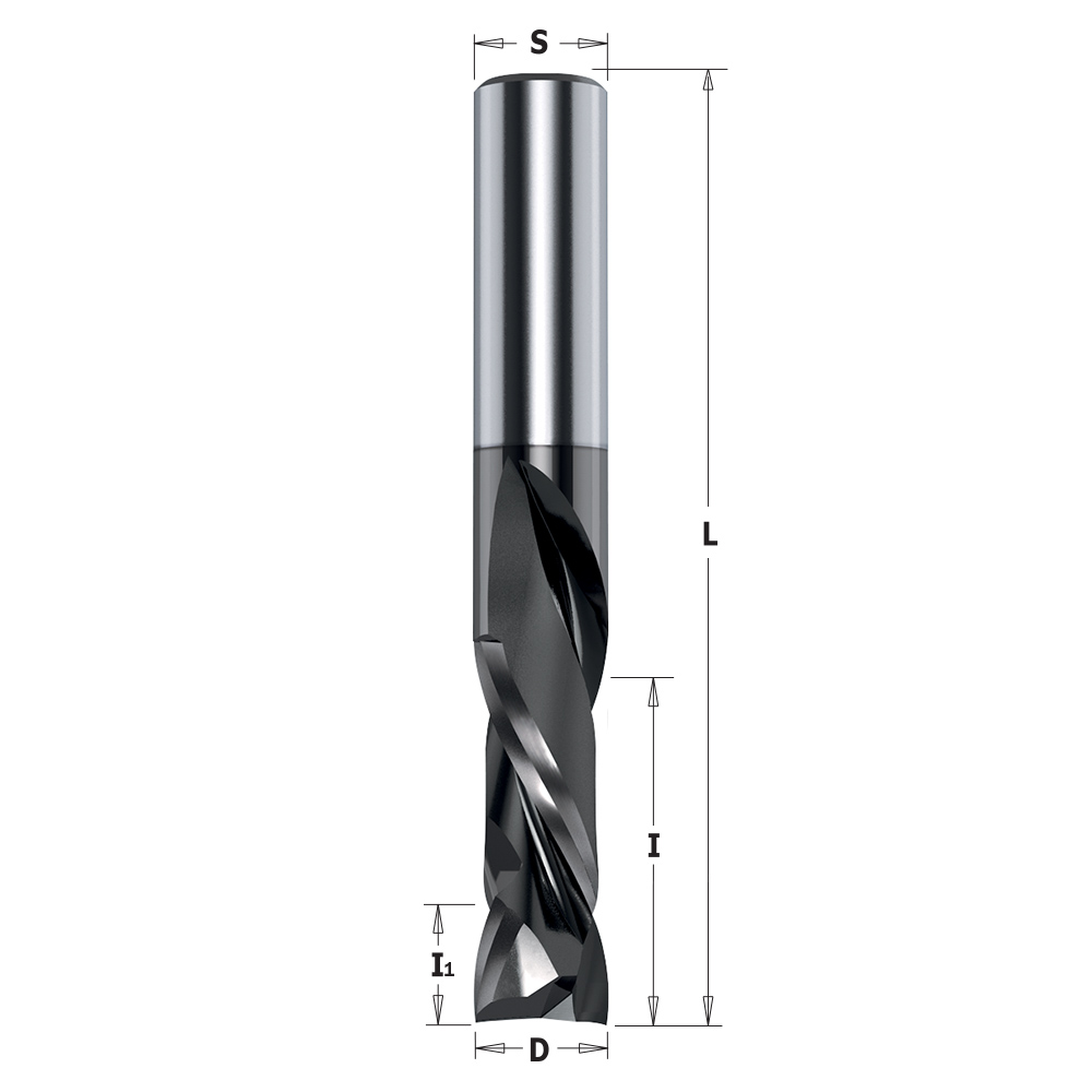 Fräser mit positiver Schnittlänge I Spiralwerkzeug mit spezieller DLCS-Chrombeschichtung, ähnlich wie polykristalliner Diamant.