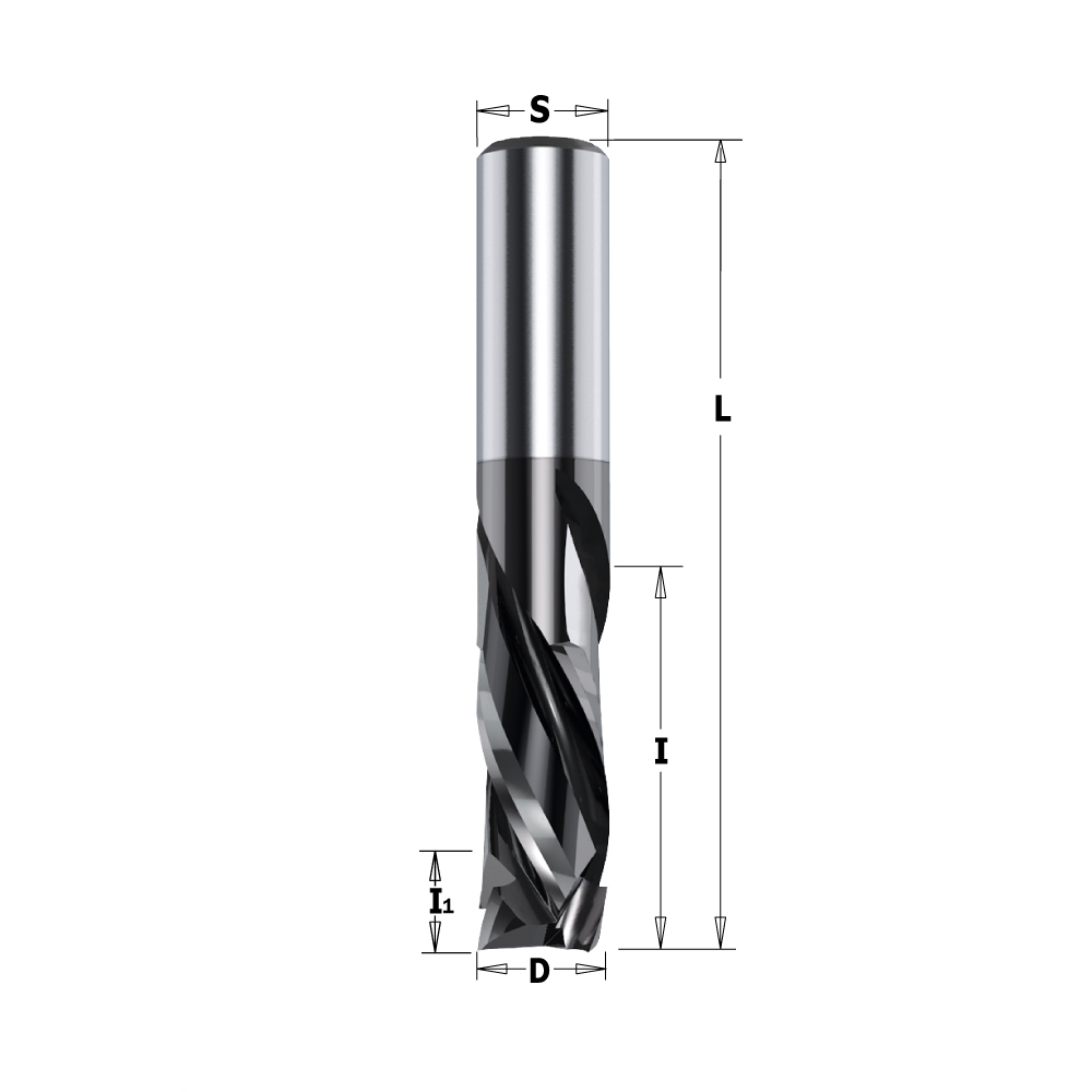 Fräser mit positiver Schnittlänge I Spiralwerkzeug mit spezieller DLCS-Chrombeschichtung, ähnlich wie polykristalliner Diamant.