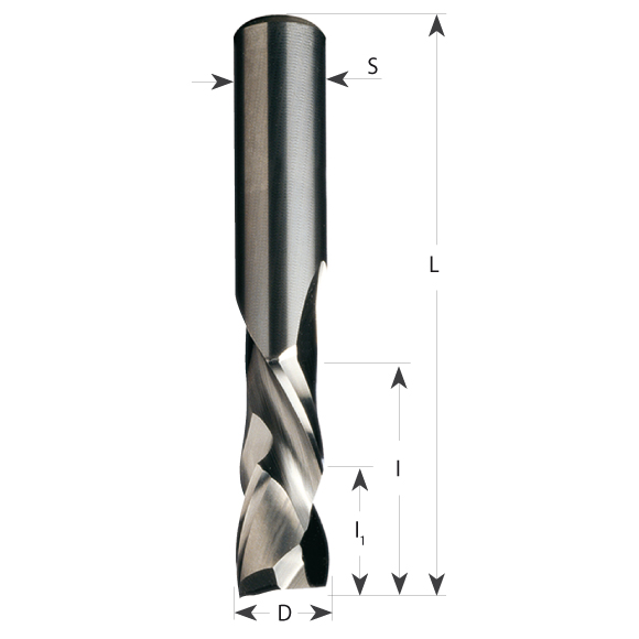 Startseite » Shop » Holzbearbeitung » CNC-Fräswerkzeuge & Zubehör für Holz, Kunststoff und Aluminium » Spiralfräser für CNC-Maschinen » 190 Spiralnutfräser mit positiv-negativer Spirale HWM – D12x52 L100 S=12 Z2+2
