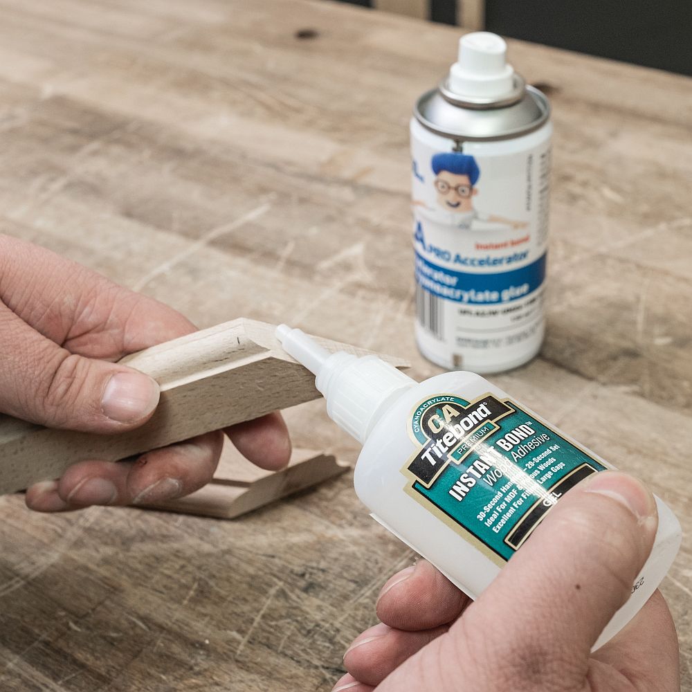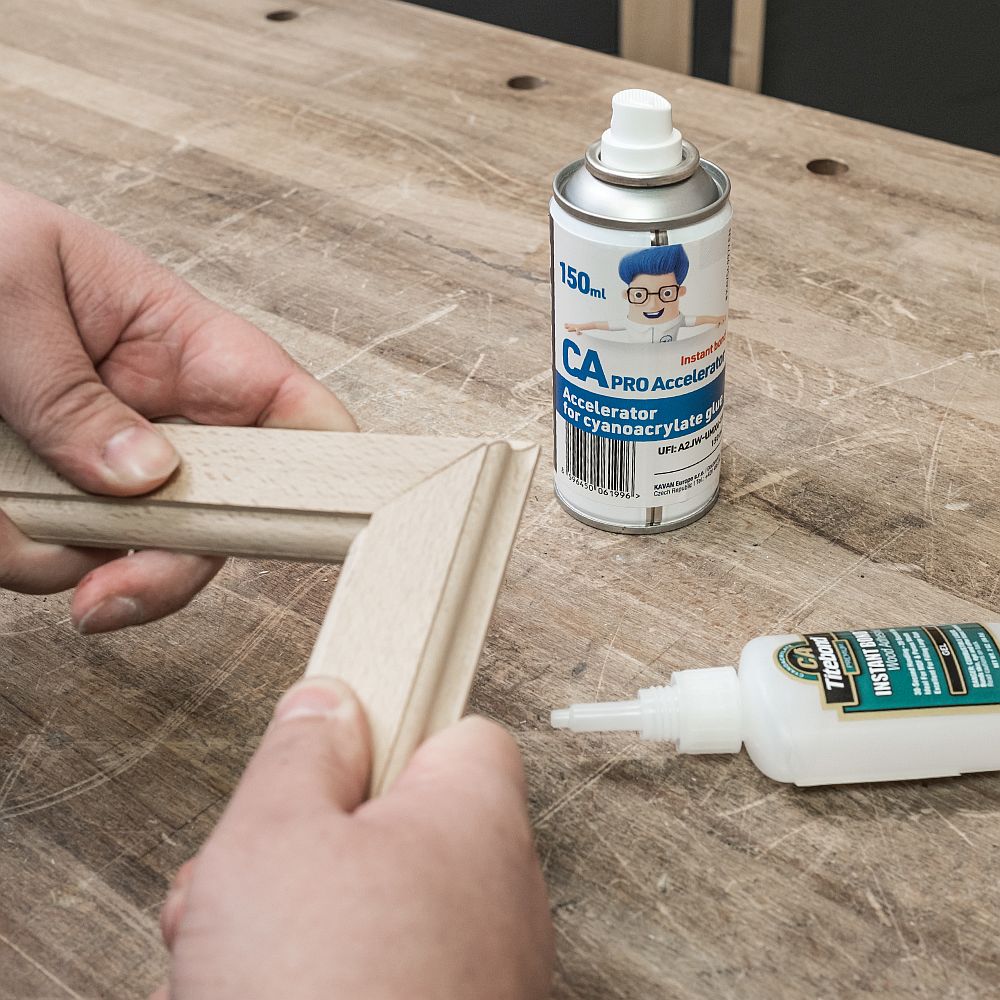 CA-Aktivator für schnell trocknende Cyanacrylat (CA)-Klebstoffe in einer Aerosolpackung. Es wird verwendet, um die Aushärtung von Titebond Instant und anderen schnell trocknenden Klebstoffen unter Bedingungen zu beschleunigen, die für ihre natürliche Aushärtung ungünstig sind: in trockener Umgebung, in der Kälte, beim Verkleben von inaktiven Materialien oder beim Auftragen einer dicken Klebstoffschicht. Das Produkt darf nicht zum Verkleben von Materialien verwendet werden, die gegen organische Lösungsmittel nicht beständig sind (z. B. Polystyrolschaum).