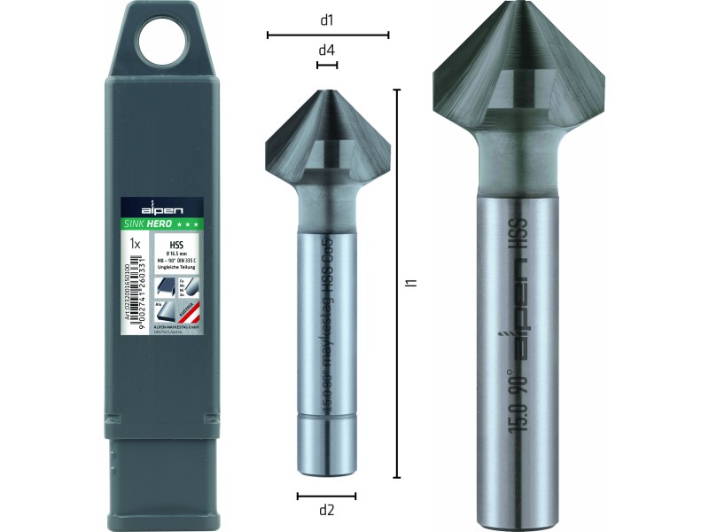 Startseite » Shop » Alpen Drill HSS-Kegelsenker 90°, Ø 6.3DIN 335, Form C,Ungleiche Teilung