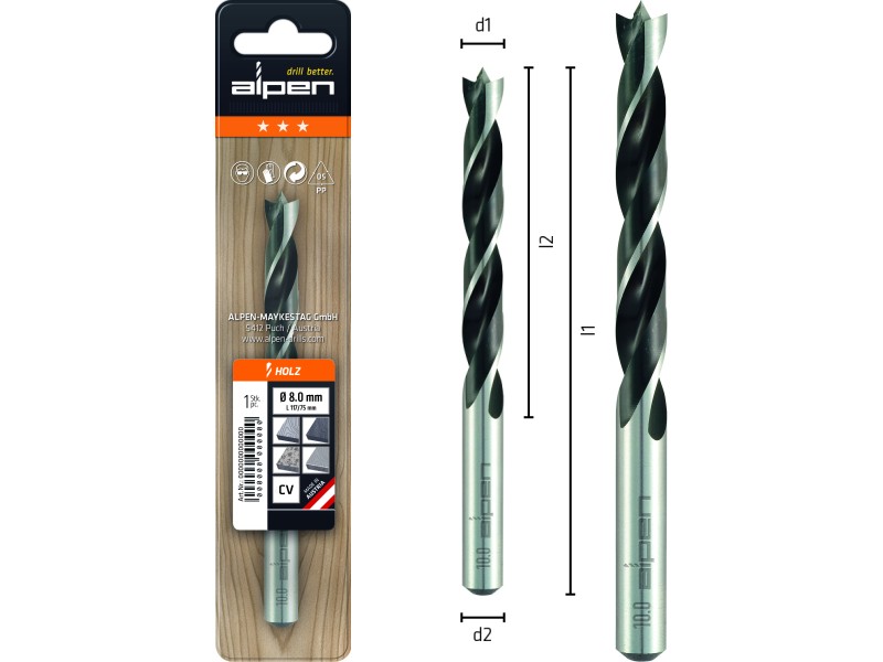 ✓ Hitzebeständig bis 250° C. Zum Bohren von Weich- und Harthölzern, Spanplatten, Hartfaserplatten, zum Dübellochbohren.