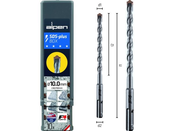 ✓ Der SDS-plus Hammerbohrer F4 mit patentiertem 4-fach-Stufenprofil und patentierter Hartmetallplatte. Geringer Verschleiß, sehr hohe Standzeit. Hochleistungsbohrer zum Hammerbohren in Beton, Naturstein und Mauerwerk.