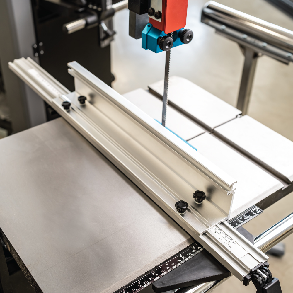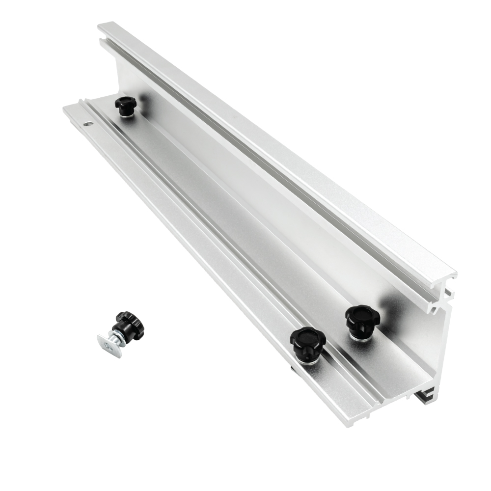 Die Anschlagschiene ist zur Befestigung in die Führungsnuten der Klemmschiene bestimmt. Rüsten Sie Ihre Bandsäge oder Ihren Oberfrästisch auf und befestigen Sie einfach an den Tisch die neue Anschlagschiene aus extrudiertem Aluminium.  Die Anschlagschiene verfügt über eine T-Nut 11,8 × 4,8 mm zur Befestigung von Druckkämmen und Anschlägen. Die Länge der Anschlagschiene beträgt 458 mm, die Höhe 90 mm. Im Lieferumfang ist die Anschlagschiene und ein Set von Klemmschrauben enthalten. Klemmschiene ist im Lieferumfang nicht enthalten.