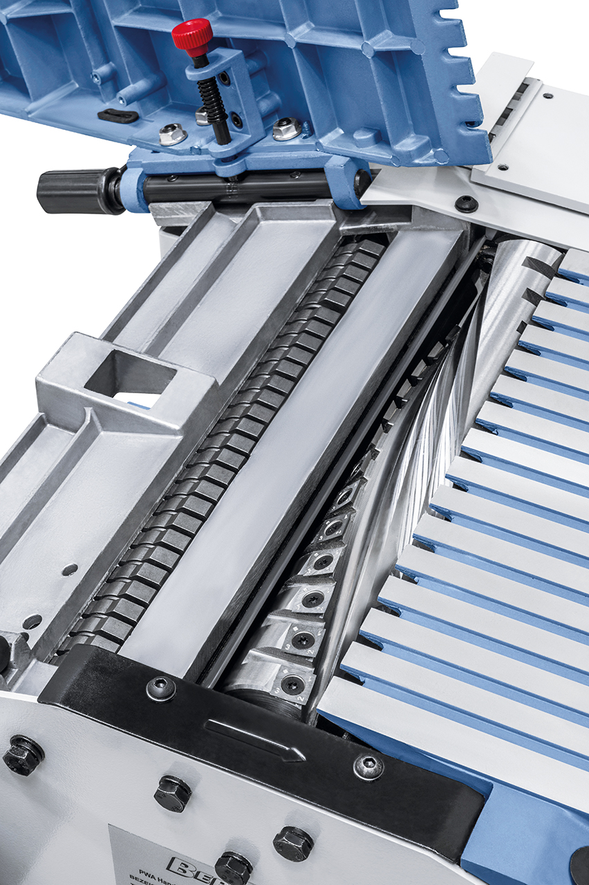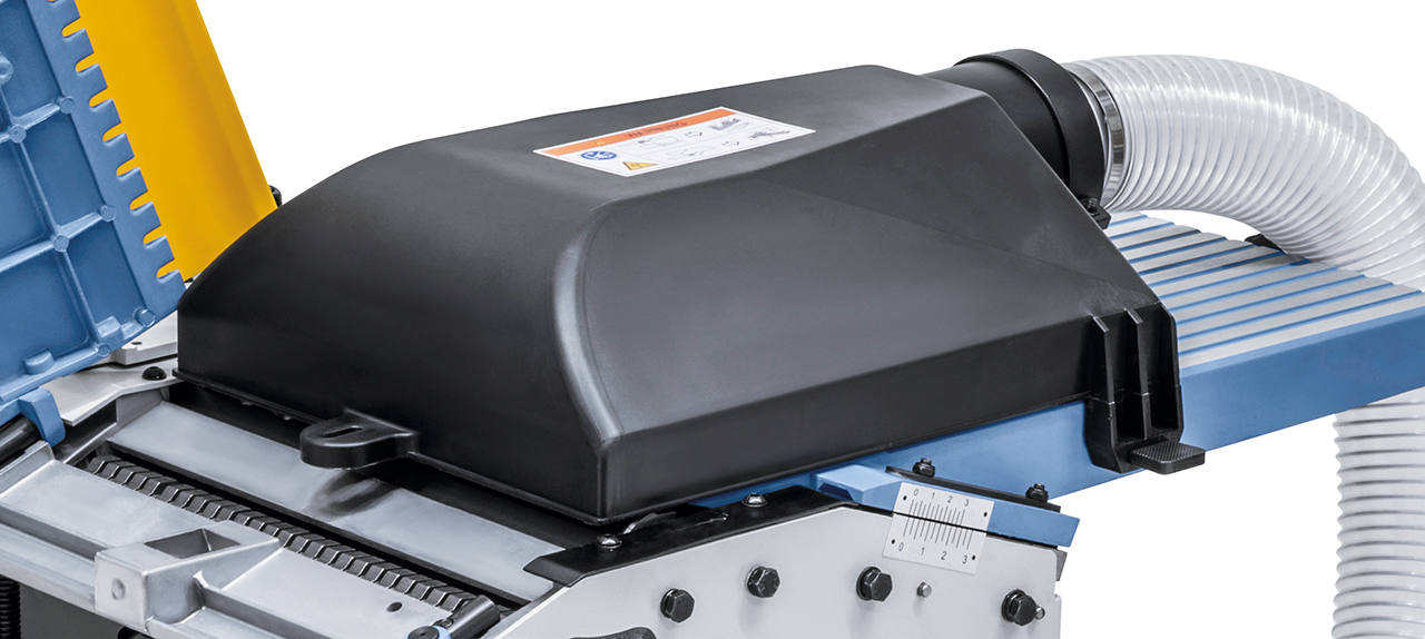 • Geriffelte Einzugswalze für sicheren und gleichmäßigen Werkstückvorschub