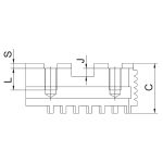 Dieses Produkt hat eine Futtergröße von 200 mm mit verschiedenen Dimensionen wie K: 22,25 mm, H: 34,9 mm, G: 12,69 mm, F: 7,94 mm, J: 4 mm, S: 3,2 mm, C: 33 mm, L: 14 mm, D: 9 mm, E: 10 mm, B: 25 mm und A: 79 mm. Die Bolzengröße beträgt M10.