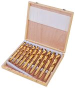 Dieses 10-teilige, TiN-beschichtete Set mit Morsekegel MK 2 wird in einer Holzkassette geliefert und beinhaltet Größen von 14,5 mm bis 23 mm.