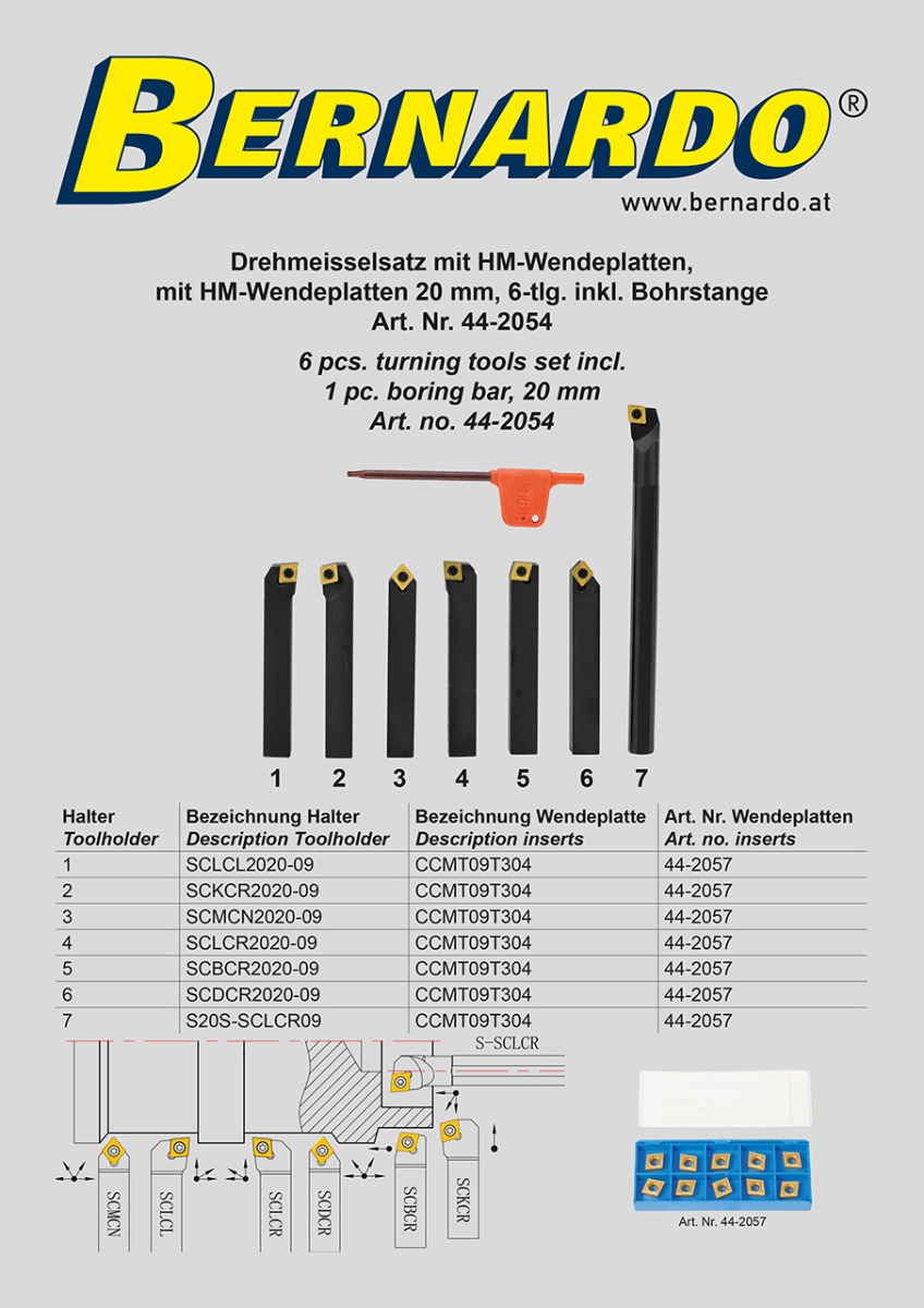 Technische Spezifikationen Bernardo HM-Drehmeißelsatz, 6-tlg. inkl. Bohrstange, 20 mm
