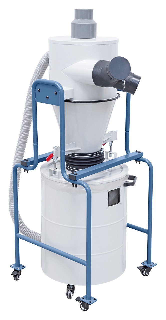 Dieses Feinstaub-Filtergerät ist ideal für eine Vielzahl von Holzbearbeitungsmaschinen, verfügt über einen ausfahrbaren Abfüllbehälter mit 118 Litern Volumen und einen Spänesack mit den Maßen Ø 500 x 850 mm. Es bietet hohe Mobilität durch sein Fahrwerk und eine einfache Kontrolle des Füllstandes durch das Schauglas. Die Maschinenabmessung beträgt 790 x 310 x 1570 mm und das Gewicht etwa 35 kg.