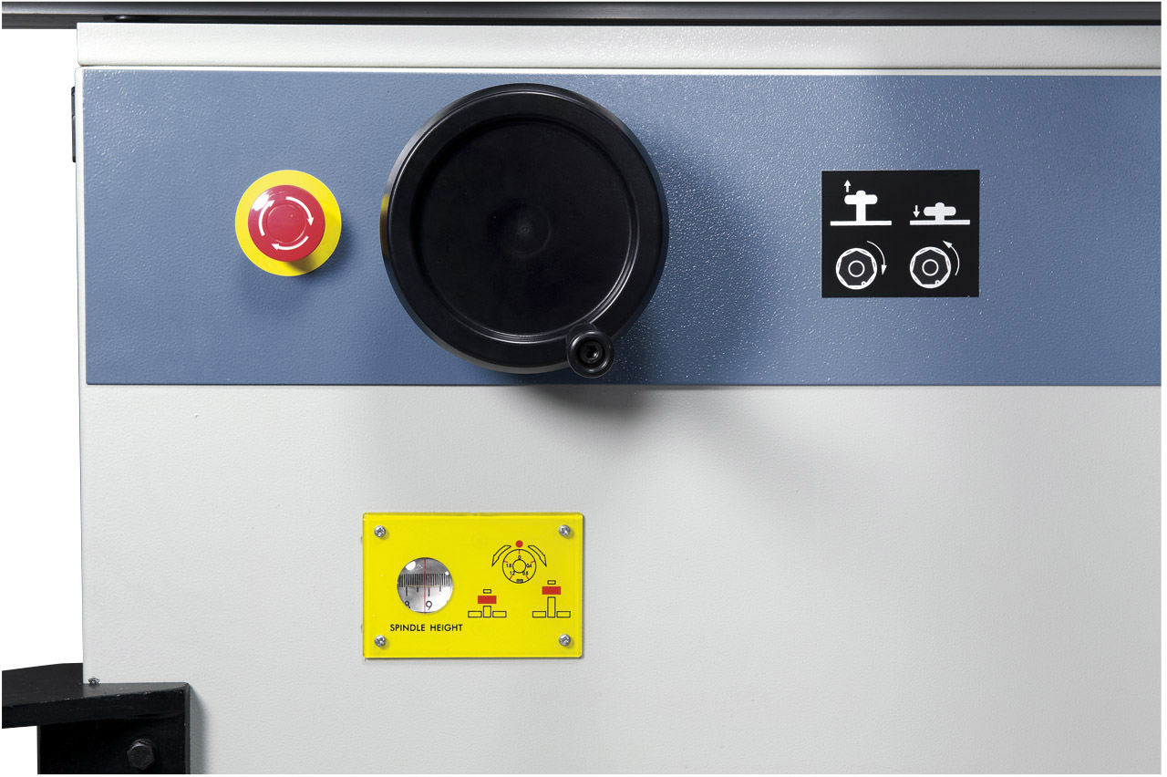 • Höhenverstellung der Frässpindel mittels Handrad an der Vorderseite, ablesbar über Skala
