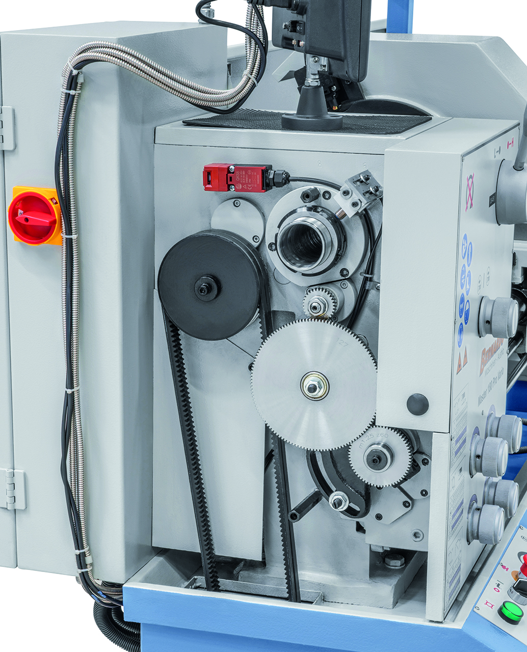 - Die Drehzahl- und Vorschubeinstellung ist einfach aufgebaut, leichtgängig und präzise schaltbar
