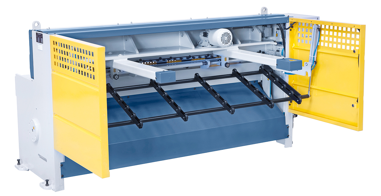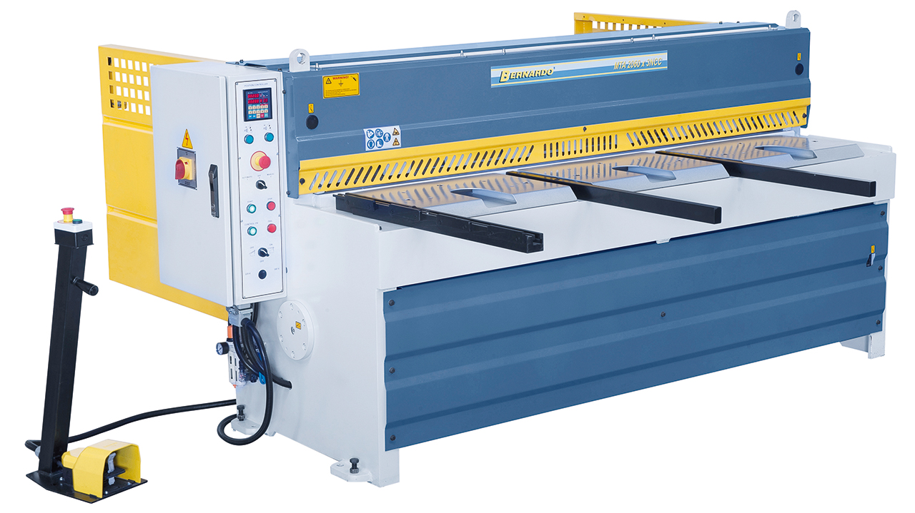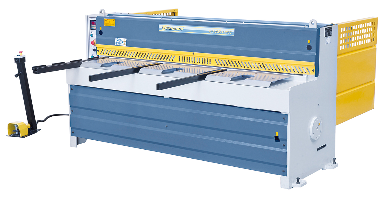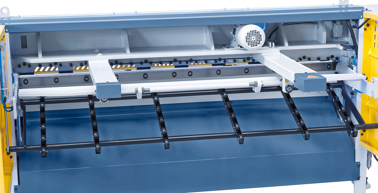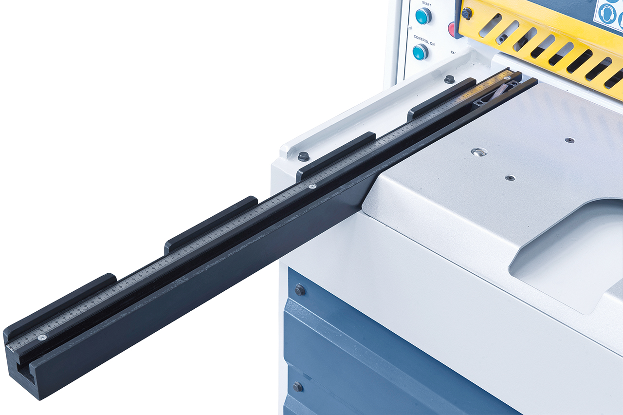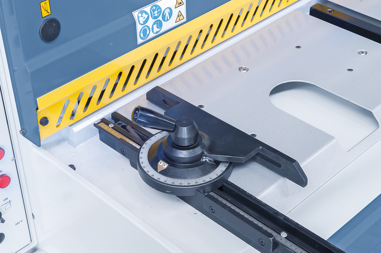 - Scherentisch mit rechtwinkeligem Anschlag für exaktes Einstellen des Werkstückes