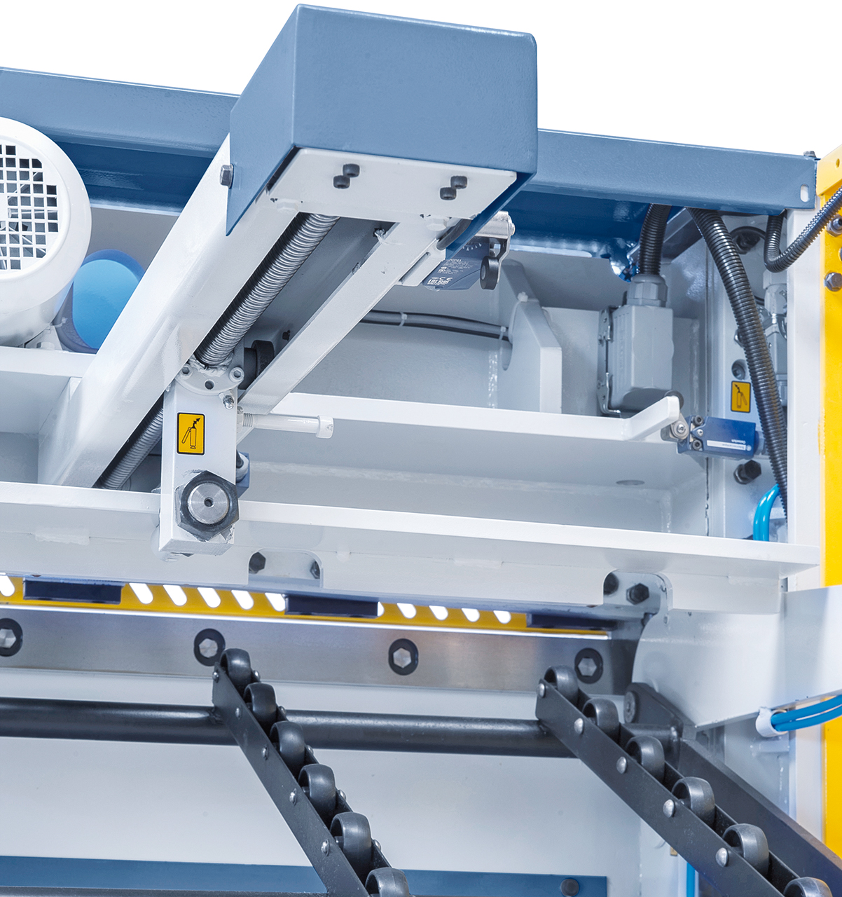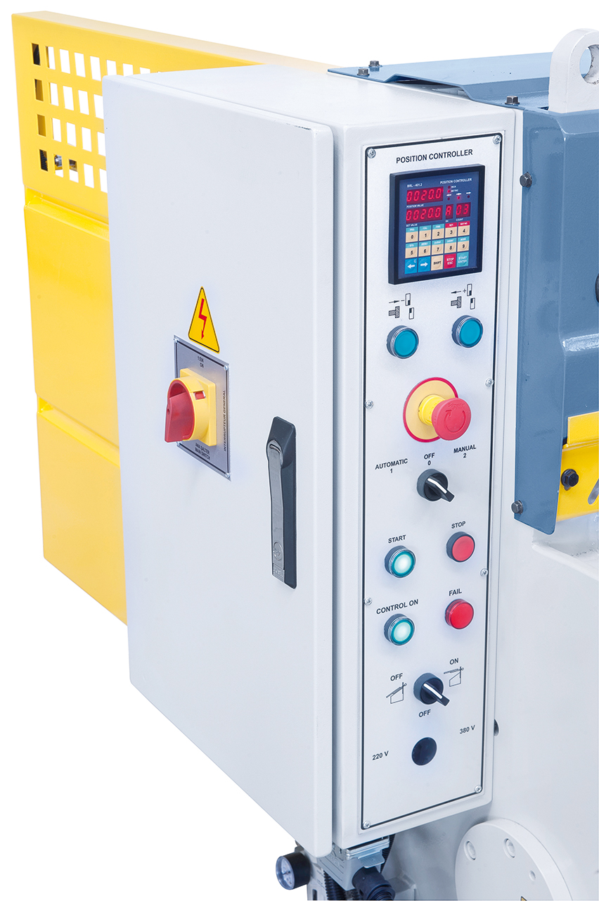 - Motorischer Hinteranschlag, präzises Verfahren über Kugelumlaufspindeln