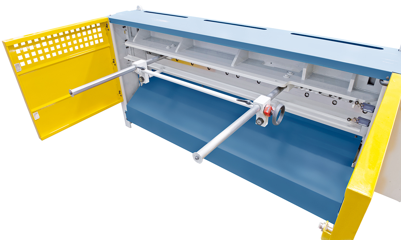 - Scherentisch mit rechtwinkeligem Anschlag für exaktes Einstellen des Werkstückes