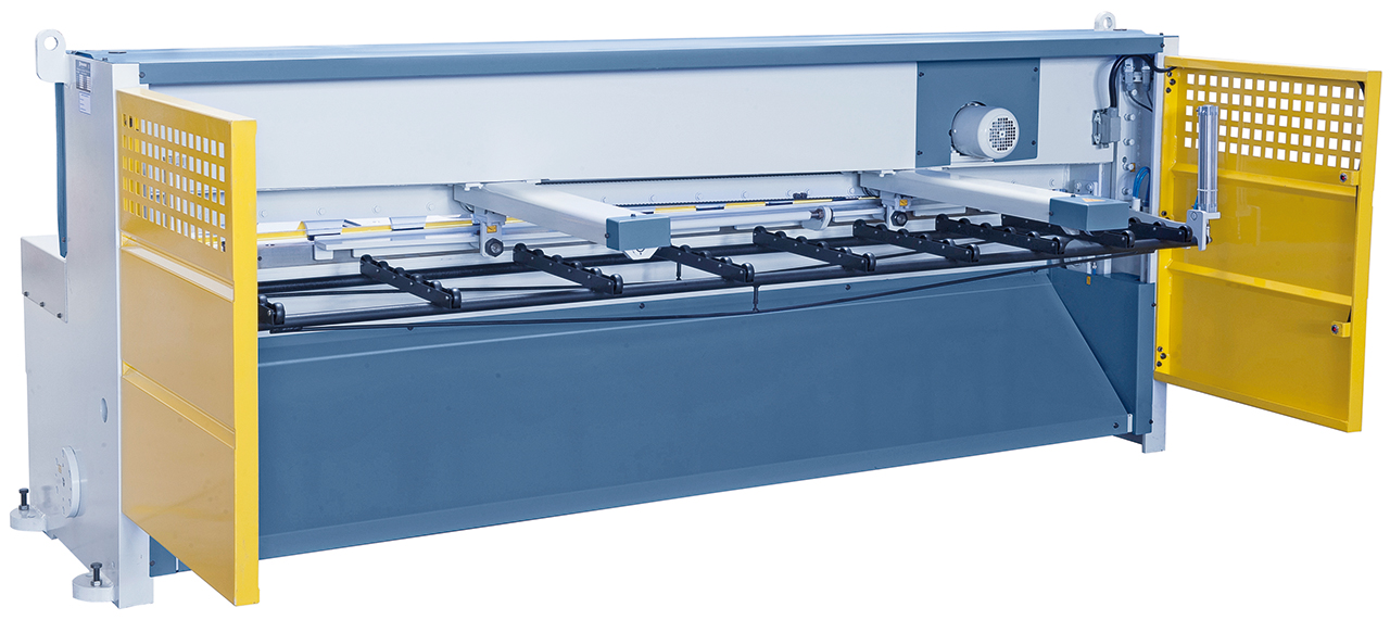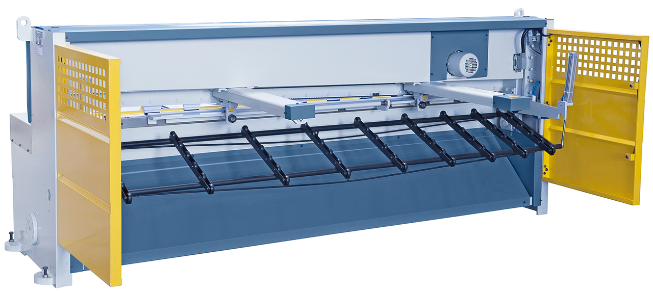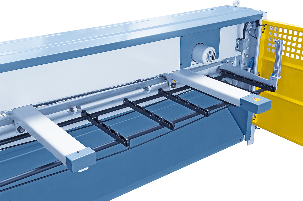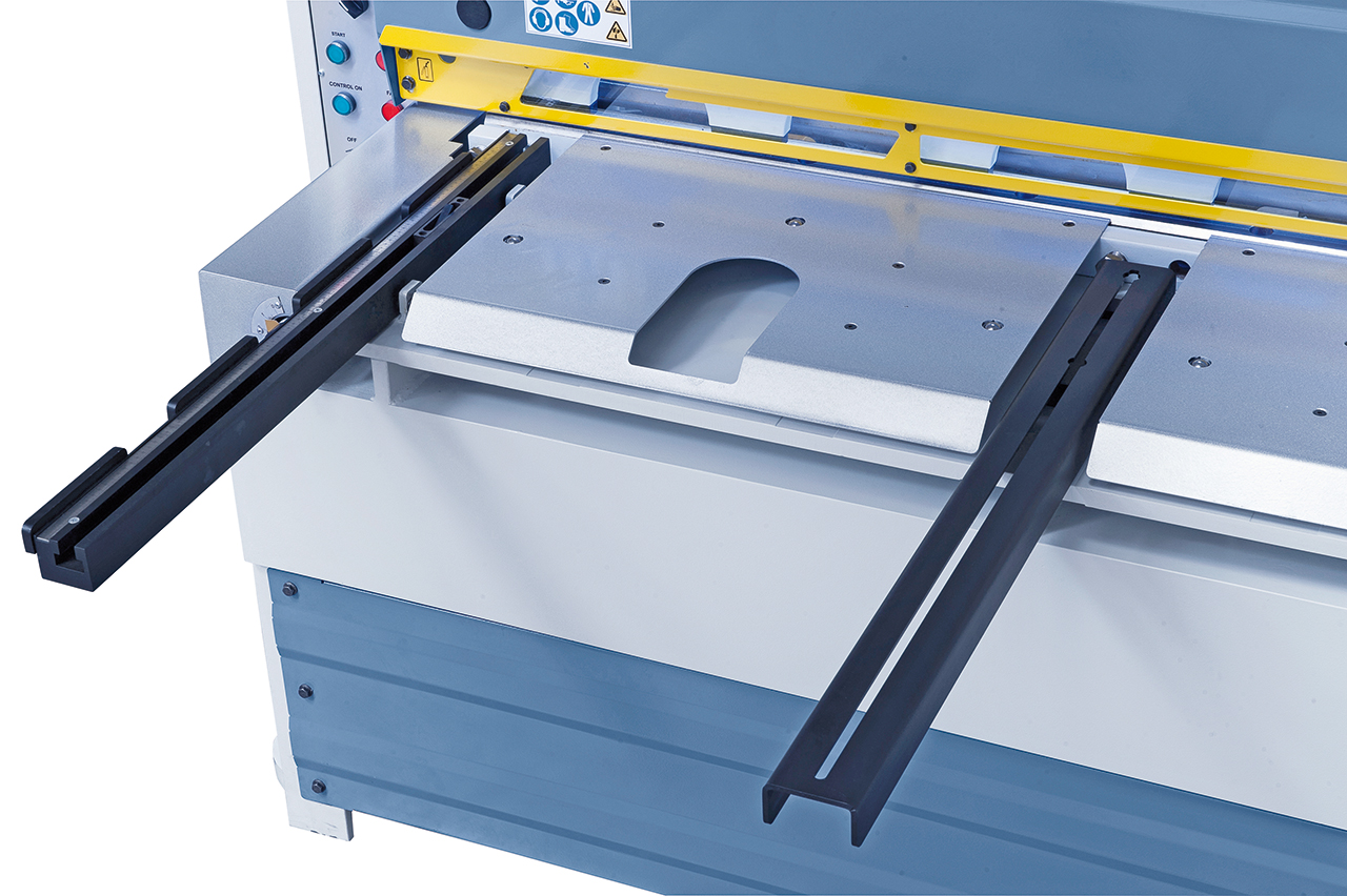 - Scherentisch mit rechtwinkeligem Anschlag für exaktes Einstellen des Werkstückes