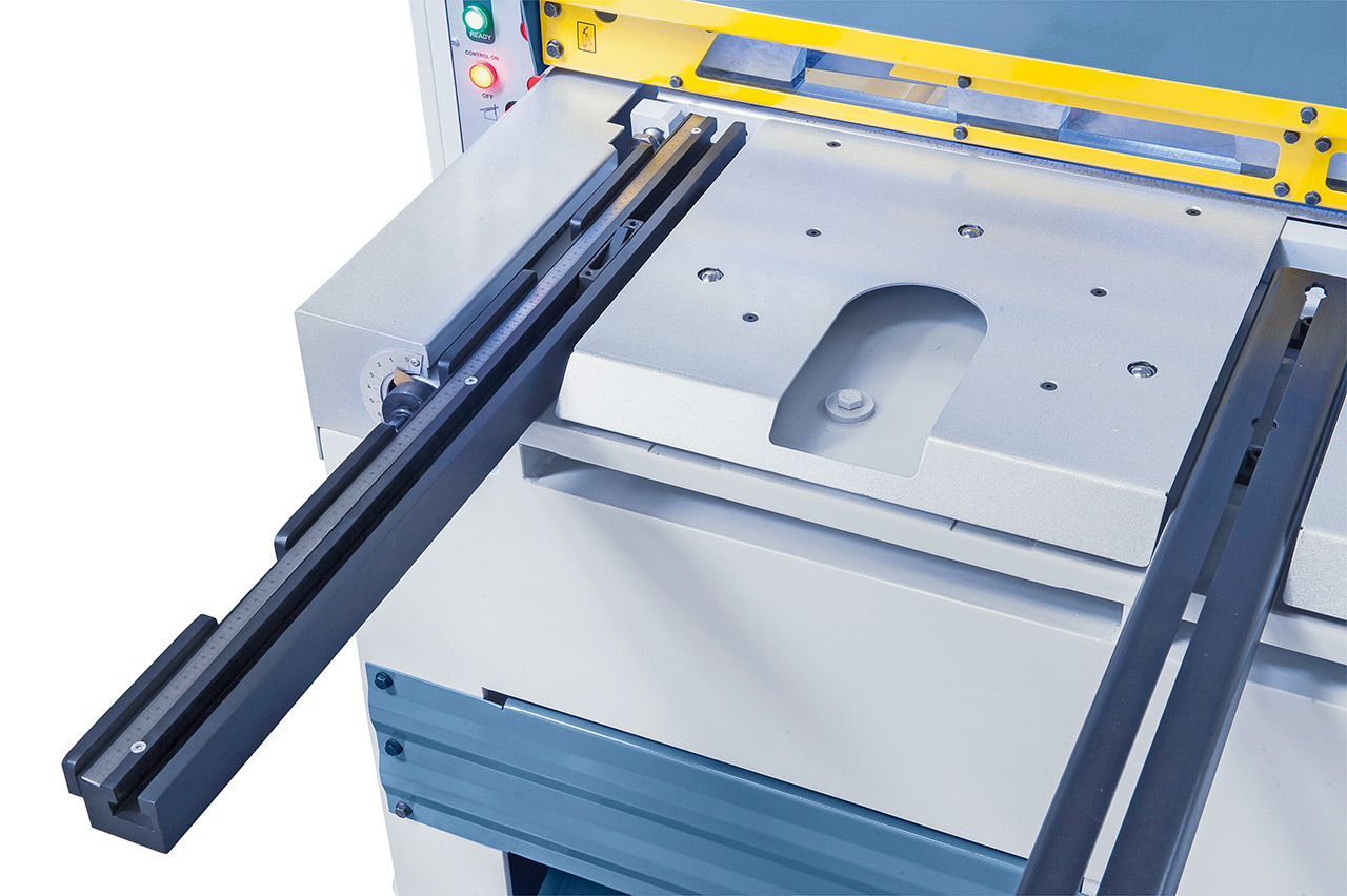 - Motorischer Hinteranschlag, präzises Verfahren über Kugelumlaufspindeln