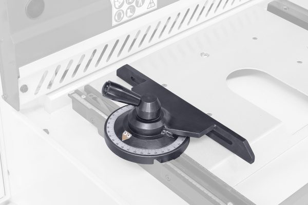 • Auflagetisch mit rechtwinkeligem Anschlag mit Skala, Kippnocke und T-Nut für den optionalen Winkelanschlag