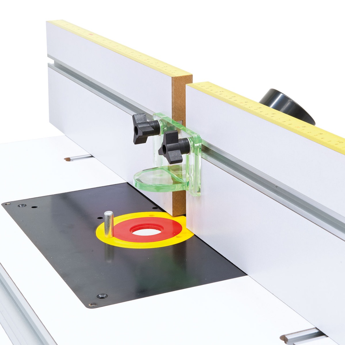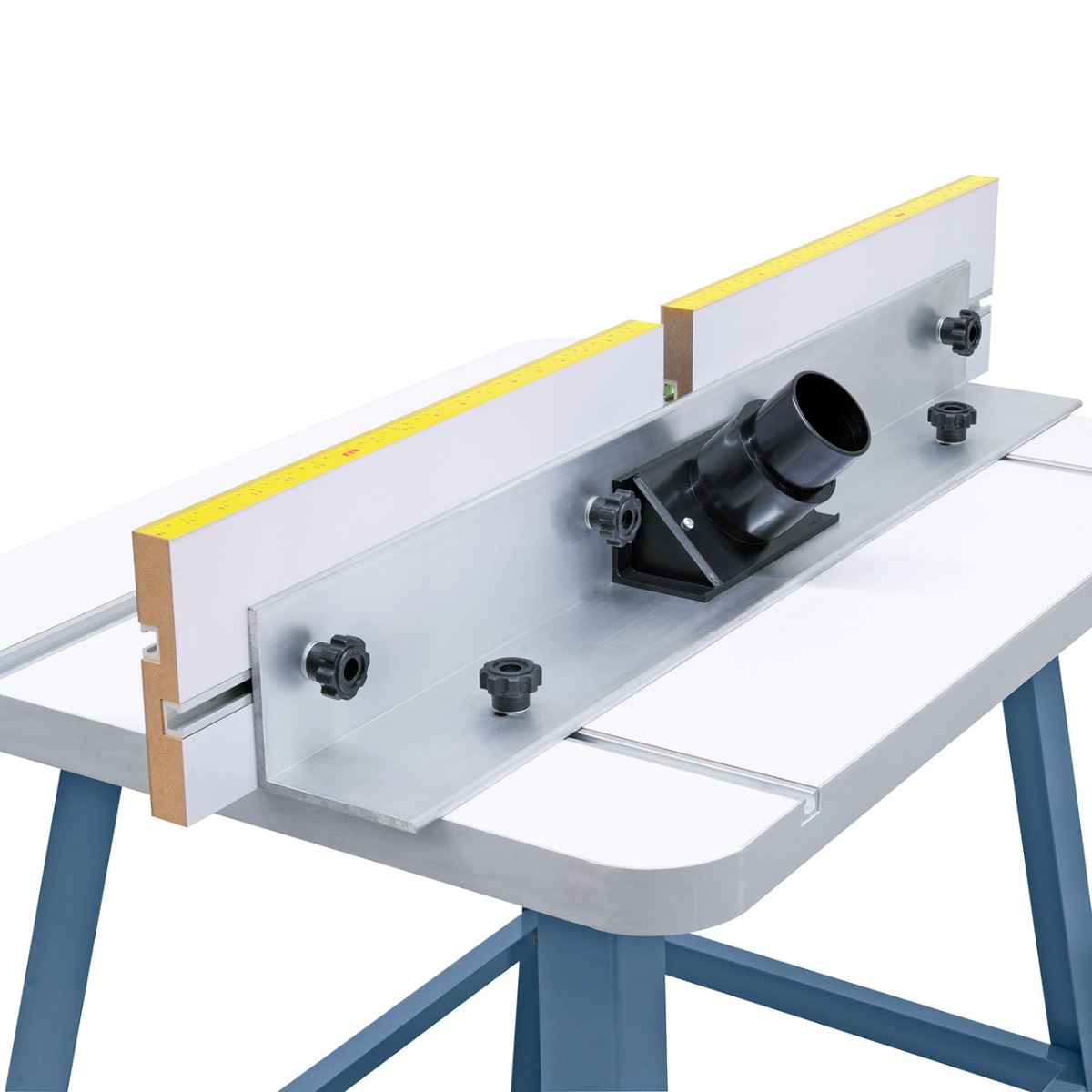 •  Inklusive verwindungssteifem Fräsanschlag mit Maßskalen und T-Nuten (8 mm)