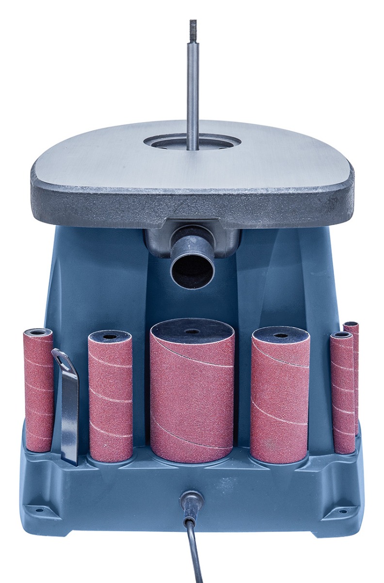 - Praktische Ablagemöglichkeit für Schleifhülsen und Tischeinlagen am Maschinenkörper