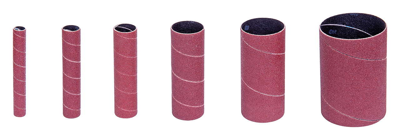 - 6 Schleifhülsen serienmäßig (13 x 115 mm / 19 x 115 mm / 26 x 115 mm / 38 x 115 mm / 51 x 115 mm / 76 x 115 mm)