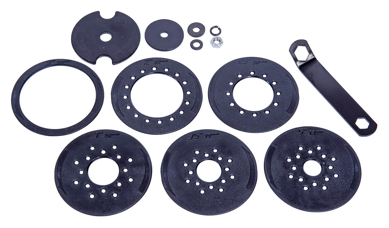 - 6 Tischeinlagen rund (Ø 13 / 19 / 26 / 38 / 51 / 76 mm)