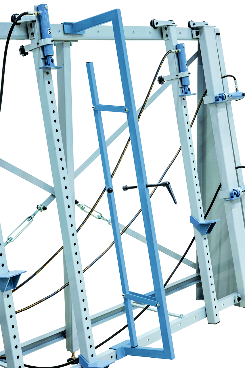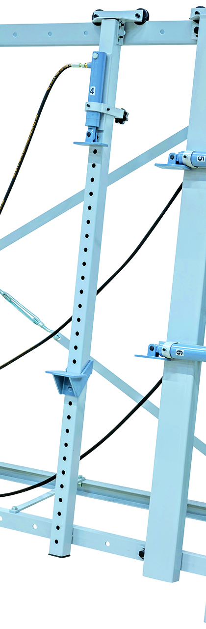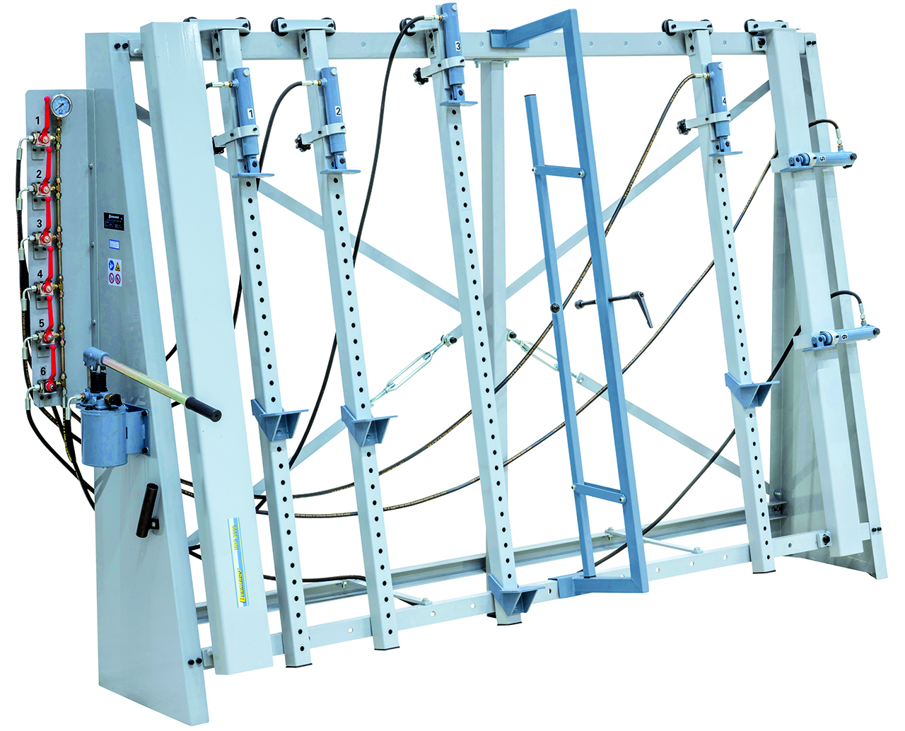 • 4 Verschiebbare Druckbalken mit je einem vertikalen Hydraulikzylinder und Gegenbock