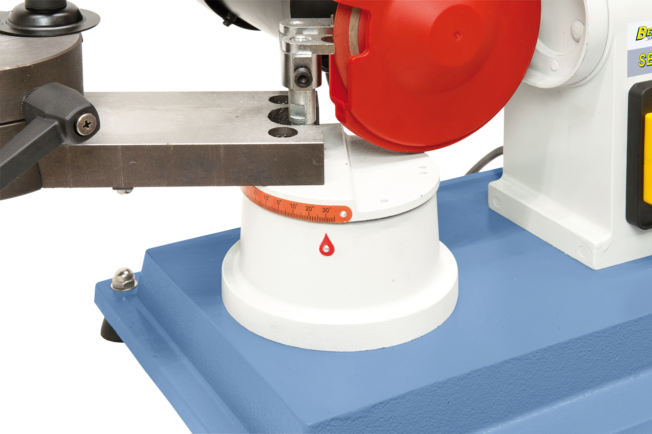 • Schwenkbare Motor-Schleifscheibeneinheit (20° links / rechts) zum Schärfen von HM-Wechselzahn-Sägeblättern (WZ)