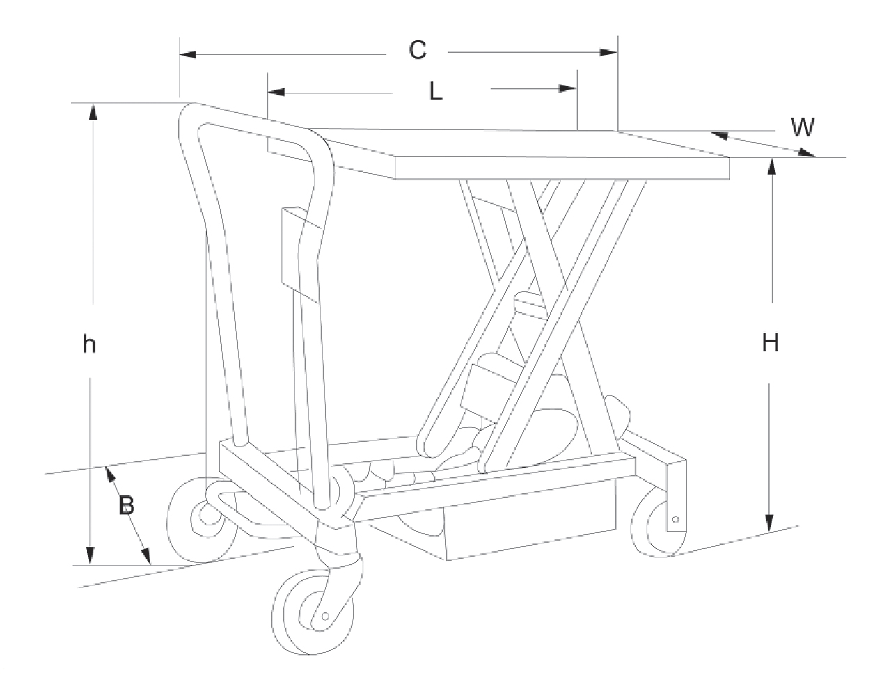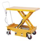 Dieser Tisch mit einer Größe von 1010 x 520 mm hat eine variable Hubhöhe von 445 – 970 mm, Lenkrollen von 150 x 40 mm und eine maximale Tragkraft von 300 kg. Seine Abmessungen betragen 1220 x 520 x 1150 mm und er wiegt ungefähr 140 kg.