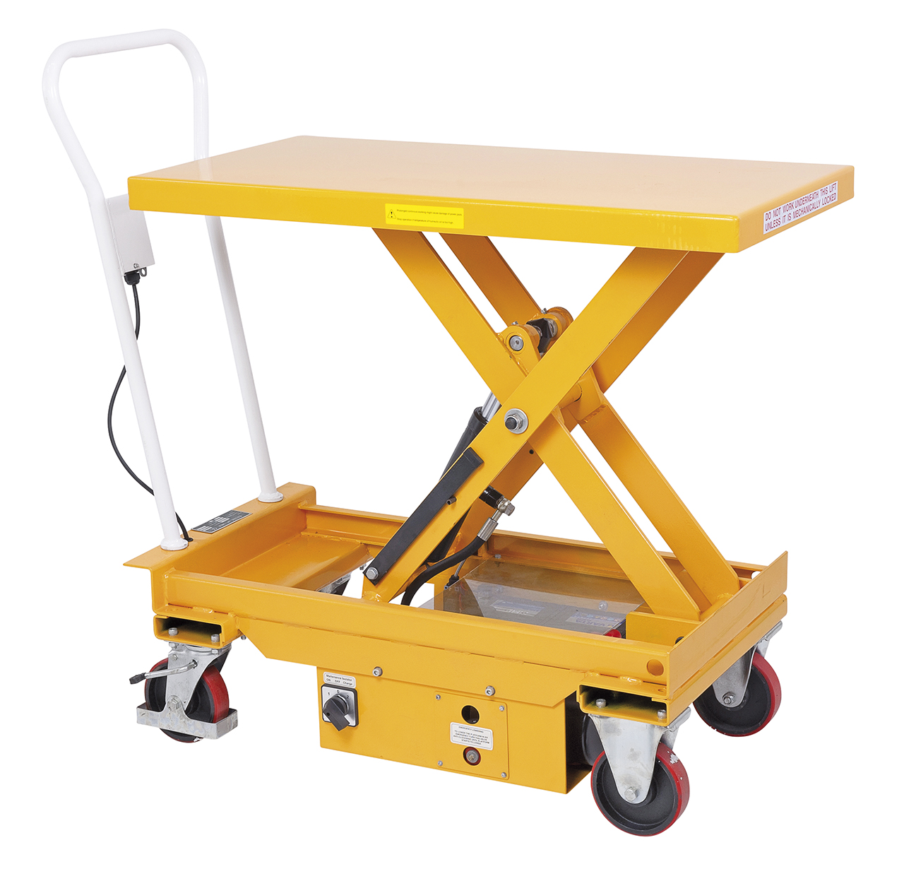 Dieser robuste Tisch mit einer Größe von 1010 x 520 mm bietet eine variable Hubhöhe von 445 – 970 mm, Lenkrollen mit 150 x 40 mm und eine maximale Tragkraft von 500 kg. Seine Gesamtabmessungen betragen 1220 x 520 x 1150 mm und er wiegt ungefähr 145 kg.