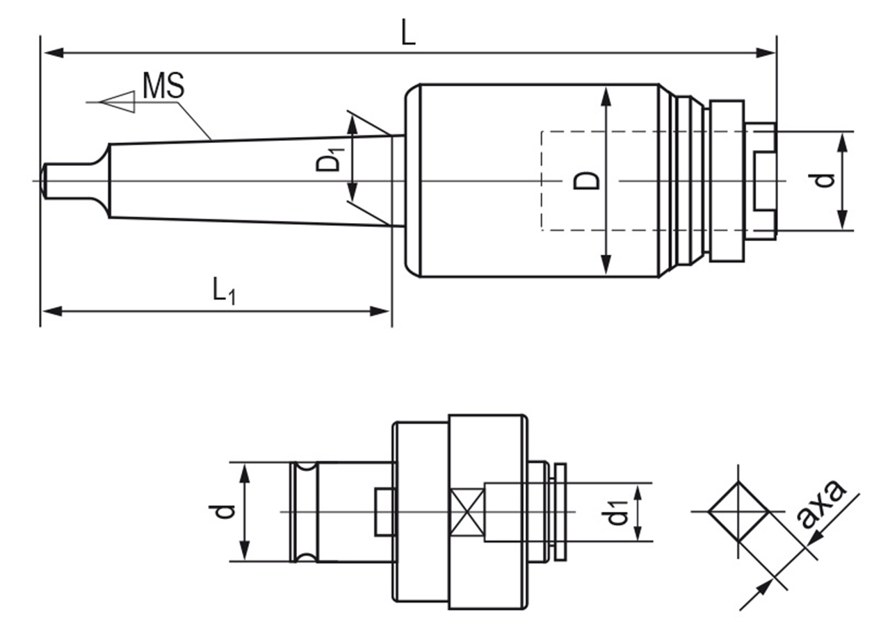 • Zur Verwendung von Gewindebohrer für Durchgangs- und Grundlochgewinden (Sacklöcher)