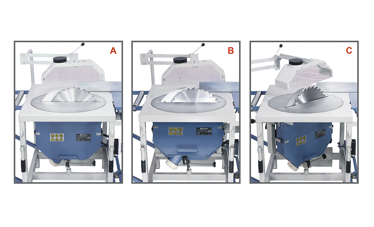 • Kappschnitte erfolgen mittels Hebel, das Sägeaggregat wird von unten nach oben geführt