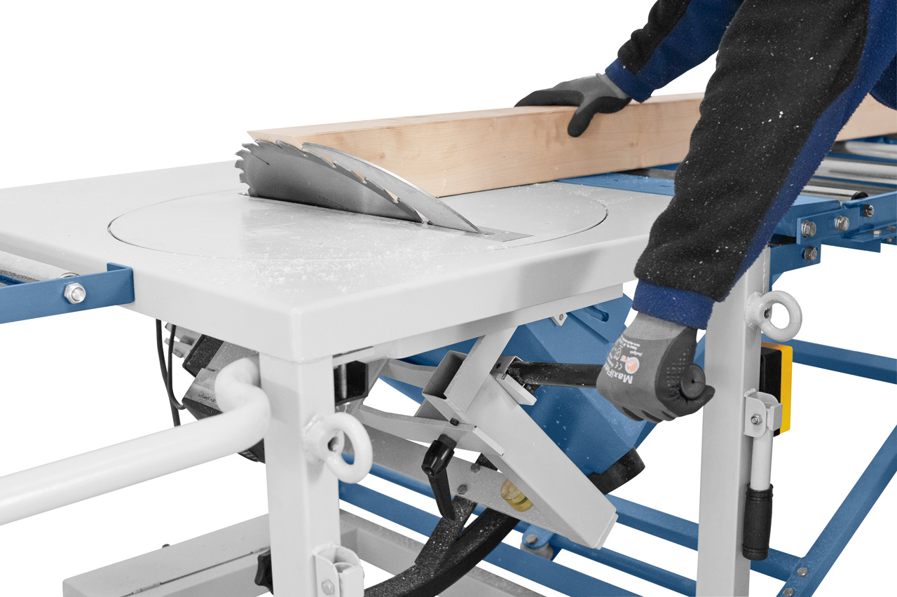 • Stabiles und leicht verstellbares Sägeaggregat für Schnitthöhen bis 120 mm