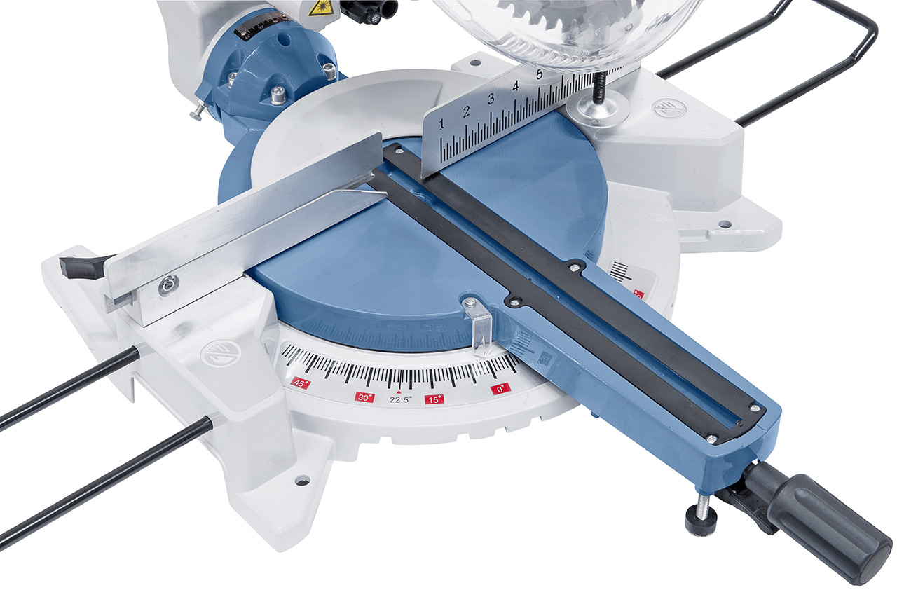 • Neigungs-, Gehrungs- und Schnittbreitenskala leicht einsehbar