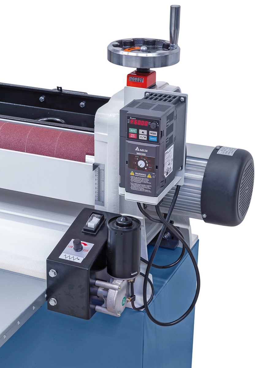 • Schleifeinheit wird mittels Handrad und Skala an die Werkstückdicke angepasst