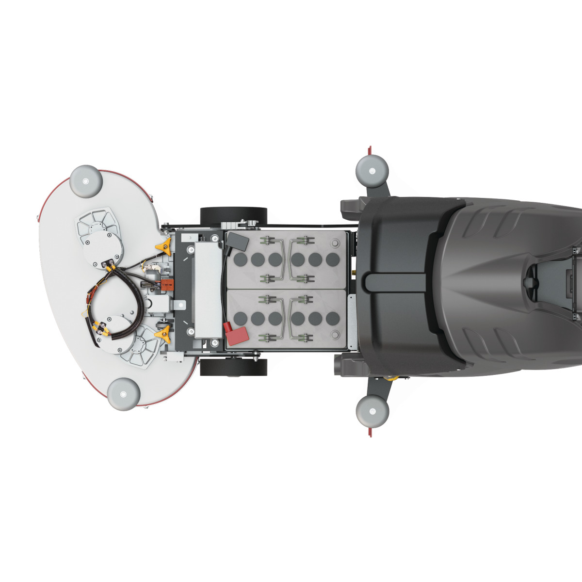 • ECOselect-Modus: Reinigen in sensiblen Bereichen möglich durch Absenkung des Geräuschpegels, Senkung des Energieverbrauchs und eine Erhöhung der Betriebszeit um bis zu 20 %, Verringerung des Wasserverbrauchs und Bürstenverschleißes, reduzierte Wartungskosten an den Motoren