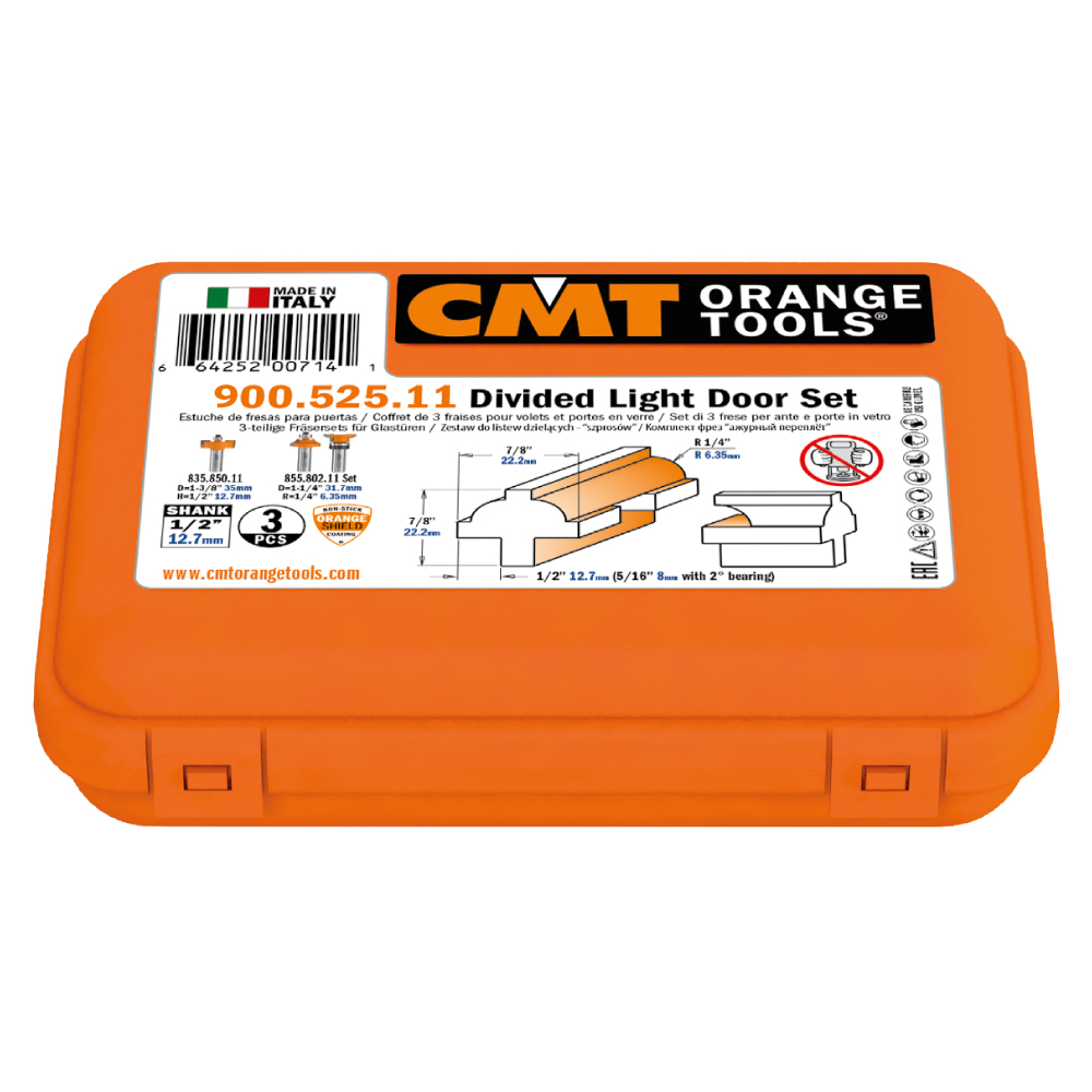 CMT 3-teilige Fräsersets für Glastüren S=8 HW