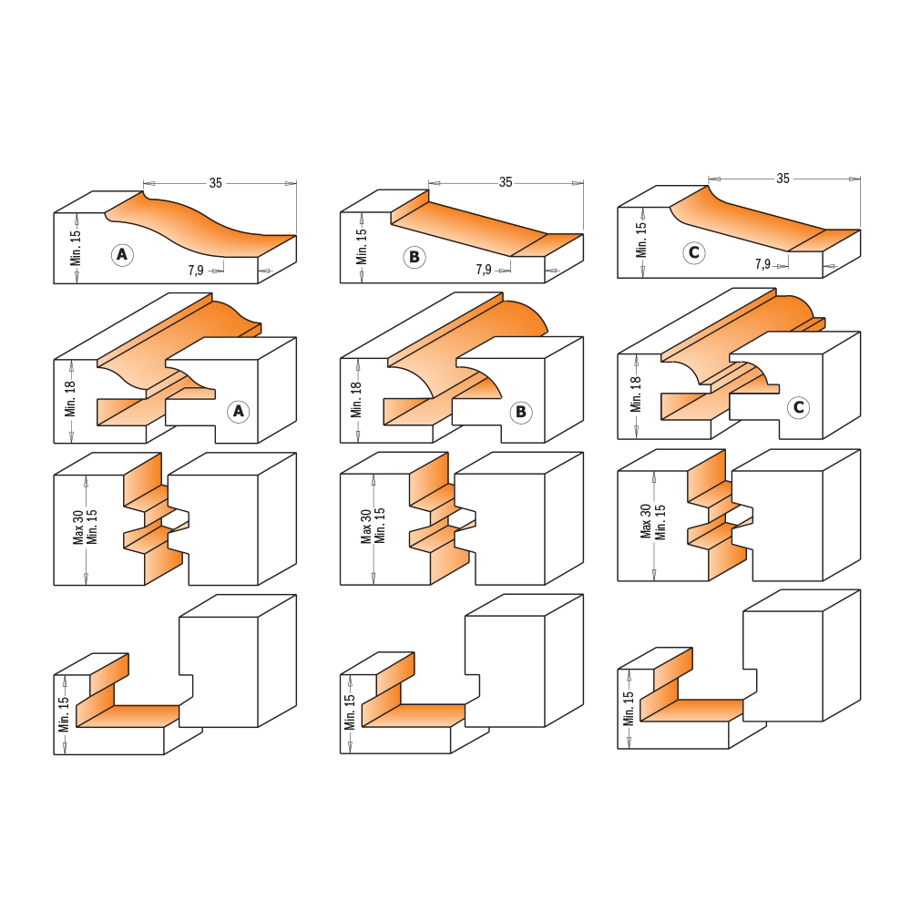 CMT 5-teilige Fräsersets für Küchen - profile A S=12 HW -1
