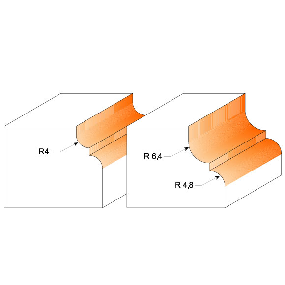 Mit diesen Werkzeugen können Sie Ihr Werkstück abrunden und/oder Hohlkehlen fräsen. Diese Profilfräser gehören zu den beliebtesten Werkzeugen zur Kantenbearbeitung. Diese Werkzeuge sind mit 2 Hartmetallschneiden ausgestattet und mit einer orangen Antihaft- und Korrosions-P.T.F.E.-Schicht beschichtet.