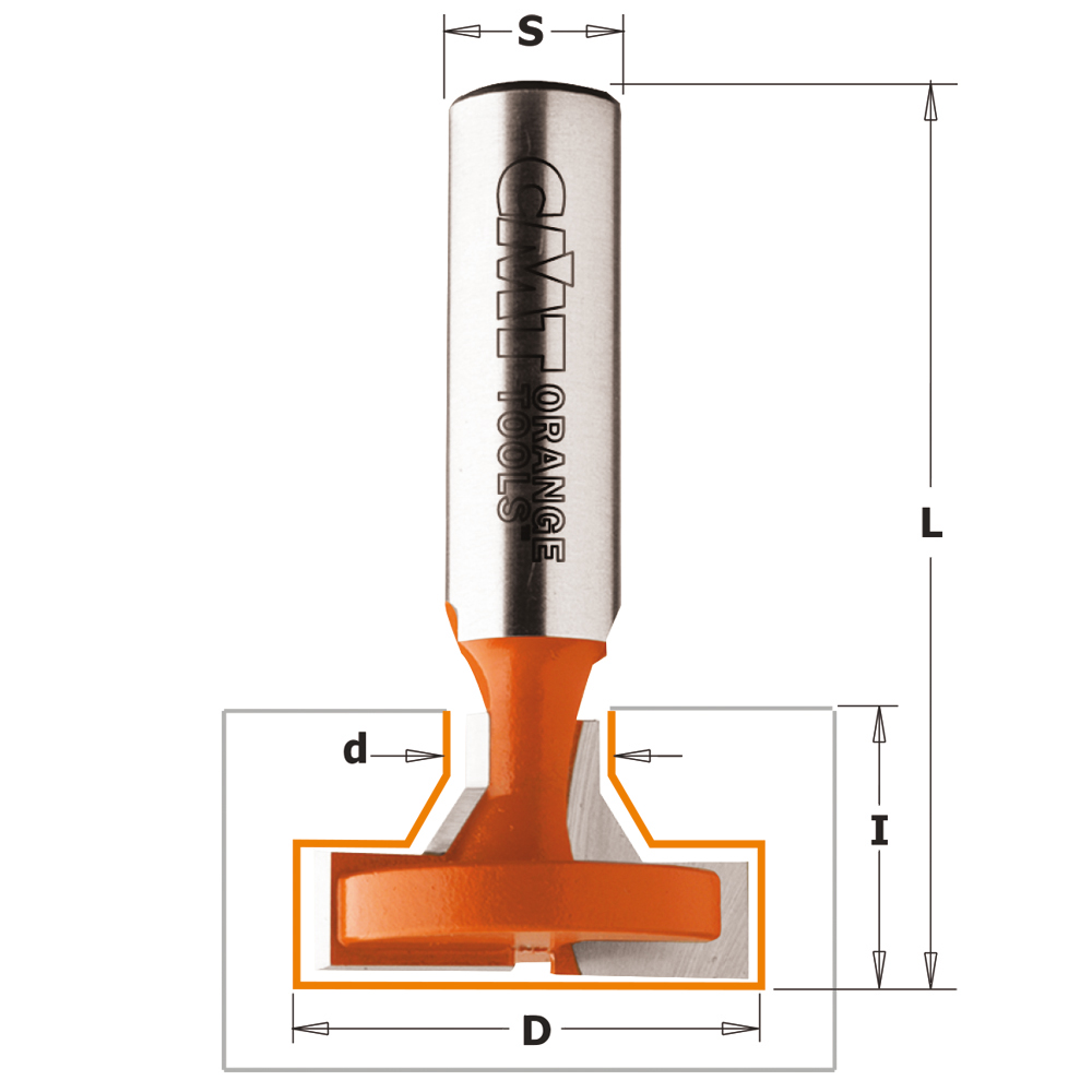 Während des Fräsvorganges erzeugt die schmale Taille des Fräsers einen Schlitz; das Ende des Fräsers schafft gleichzeitig eine breitere Ausfräsung unter der Oberfläche des Werkstückes. Diese Ausfräsung erlaubt eine optimale Befestigung Ihres Werkstückes an der Wand durch Schrauben oder Nägeln.