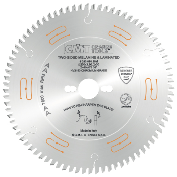 CMT CHROME C283 Industrielle geräuschgedämpfte Kreissägeblätter aus Chrom für Melamin und Laminat – D250x3,2 d30 Z80 HW