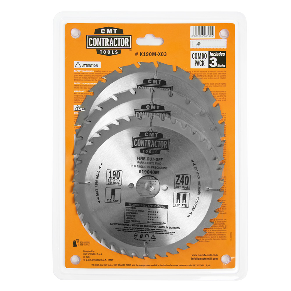 CMT Contractor Kreissägeblätter in Combo-pack – D190x2,2 d30 Z24+Z40 HW, 3 st.