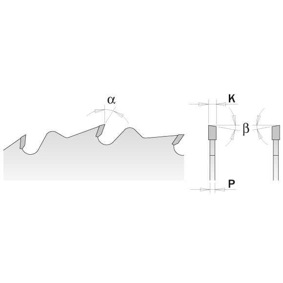 Sägeblatt mit wechselseitig geneigten Hartmetallzähnen und spezieller Räumverzahnung zum Trennen von Massivholz, trocken und nass mit einem Feuchtigkeitsgehalt von über 10 %. Die Scheibenoberfläche ist für eine erhöhte Korrosionsbeständigkeit lackiert. Die Räumverzahnung begrenzt den Kontakt des Scheibenkörpers mit dem Material und verhindert so ein Einklemmen des Holzes. Ausschließlich für den maschinellen Vorschub (MEC) konzipiert.