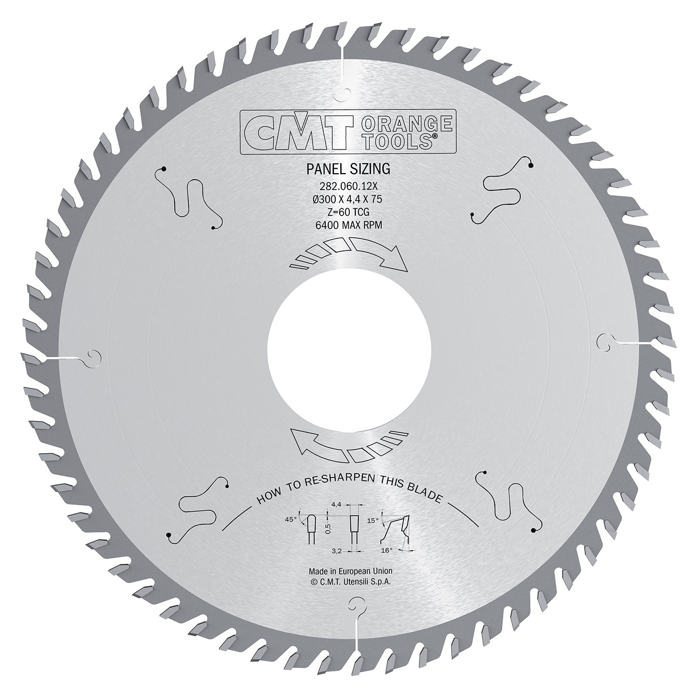CMT Industrielle Kreissägeblätter für Druckbalkensägen – D350x434 d75 Z72 16° HW