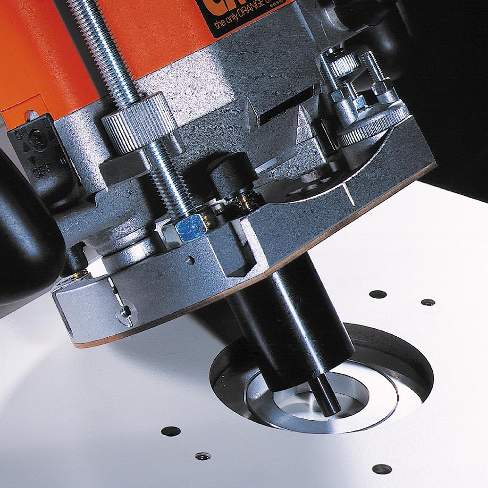 Es ist nicht mehr nötig, die Oberfräse zu entfernen oder unter der Arbeitsplatte zu arbeiten, um Ihre Fräser zu montieren oder zu demontieren.