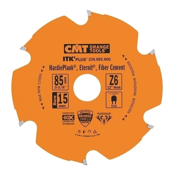 Startseite » Shop » CMT ITK Diamant-Kreissägeblätter für ultrahartes Material und Mineralwerkstoffe – D85x1,8 d15 Z6