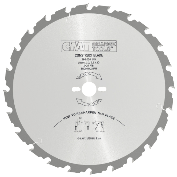 CMT Orange Sägeblatt für Baustoffe – D350x3,2 d30 Z24 HW