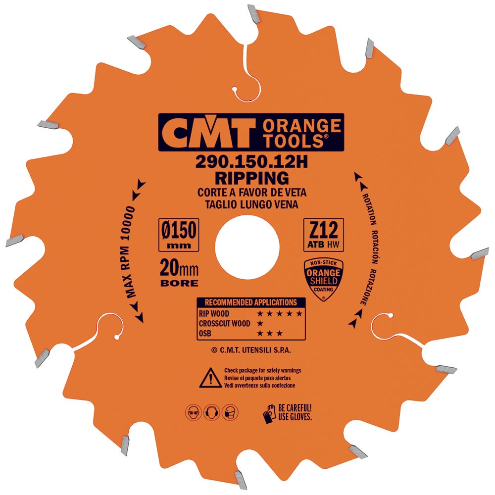 CMT Orange Sägeblatt für Längsschnitte – D160x20 Z12 HW