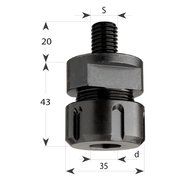 Startseite » Shop » CMT Spannzangenfutter für Tischfräsmaschinenk ER20 – S=M16x2 D=3-12,7mm