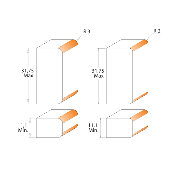 Startseite » Shop » Holzbearbeitung » Holzfräser & Oberfräswerkzeuge für Holz und Plattenwerkstoffe » Abrundfräser & Radiusfräser – Kanten abrunden und entgraten » CMT Verstellbare Fräser mit doppeltem Radius zum Abrunden – R2 or R3, I11,1-31,75 S=12 HW