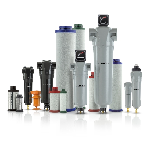 In jedem Druckluftnetz muss mindestens ein Filter installiert sein. Dadurch wird die Luftqualität verbessert, was sich vorteilhaft auf Ihr gesamtes Druckluftnetz, einschließlich nachgeschalteter Trockner, Luftleitungsrohre und Druckluftwerkzeuge, auswirkt. Je nach Anwendungen müssen Sie die Luft eventuell in mehreren Stufen filtern,um eine Sättigung der Elemente zu verhindern, die Luftqualität zu erhalten und Druckabfälle zu vermeiden.